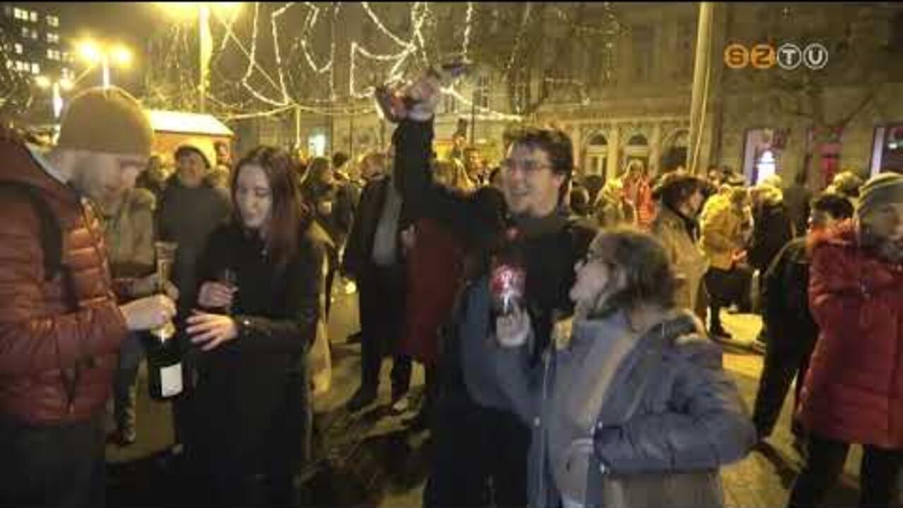 Zenével, utcabállal, pezsgővel, nagy tömeggel köszöntötte az újévet Szombathely, a Fő téren az AGORA szervezésében.